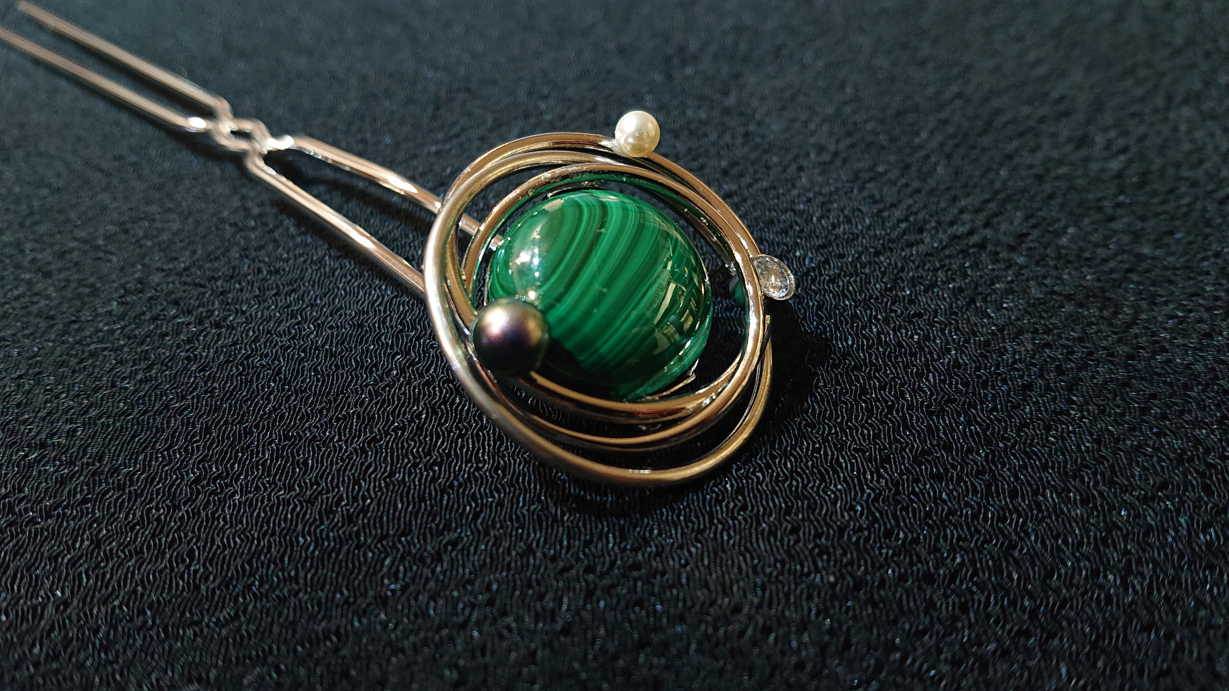 中石にはマラカイト(孔雀石)、パールはSWAROVSKIのイミテーションパールです
