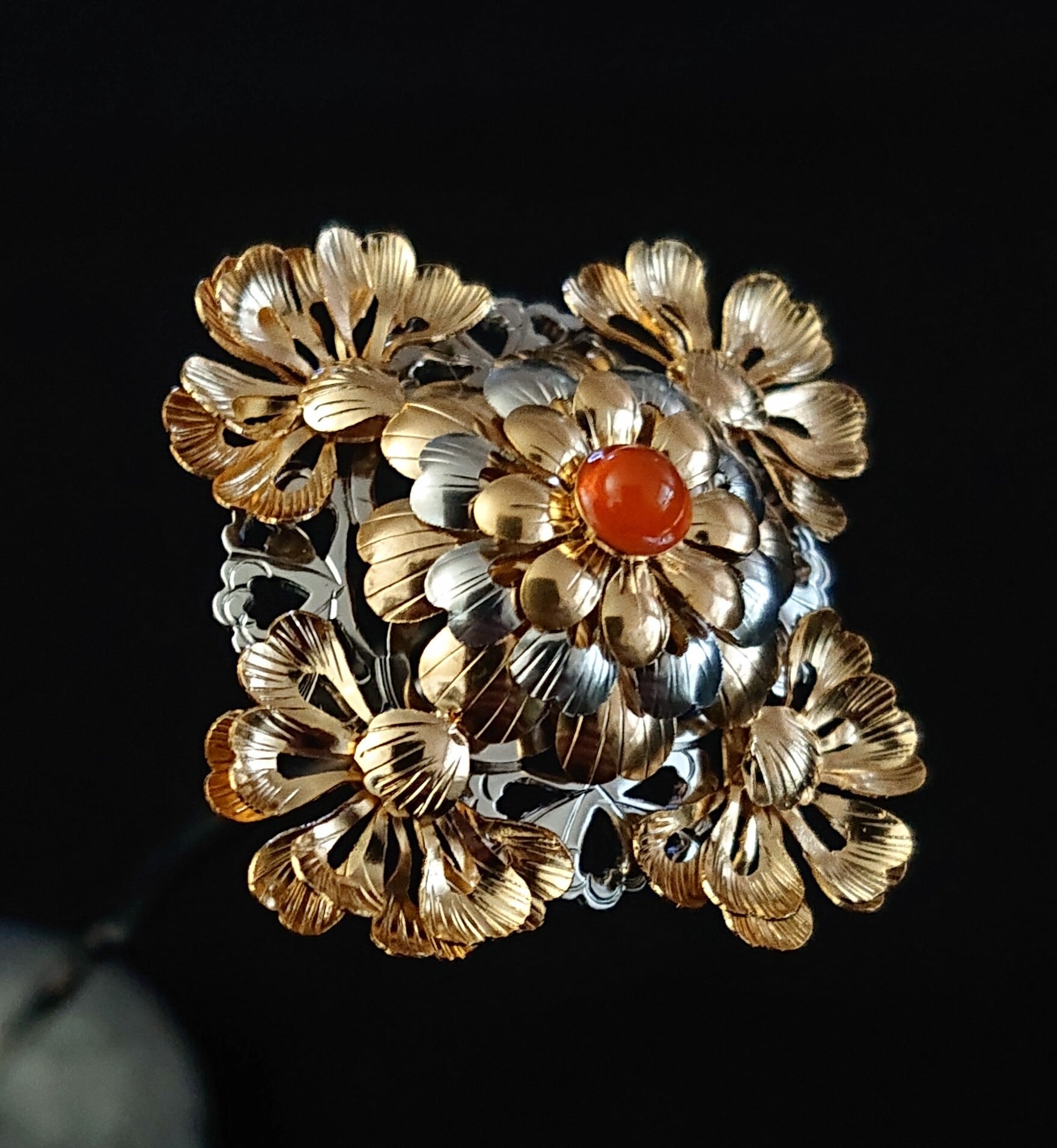 素材 真鍮 (金色、銀色メッキ) 中石 カーネリアン