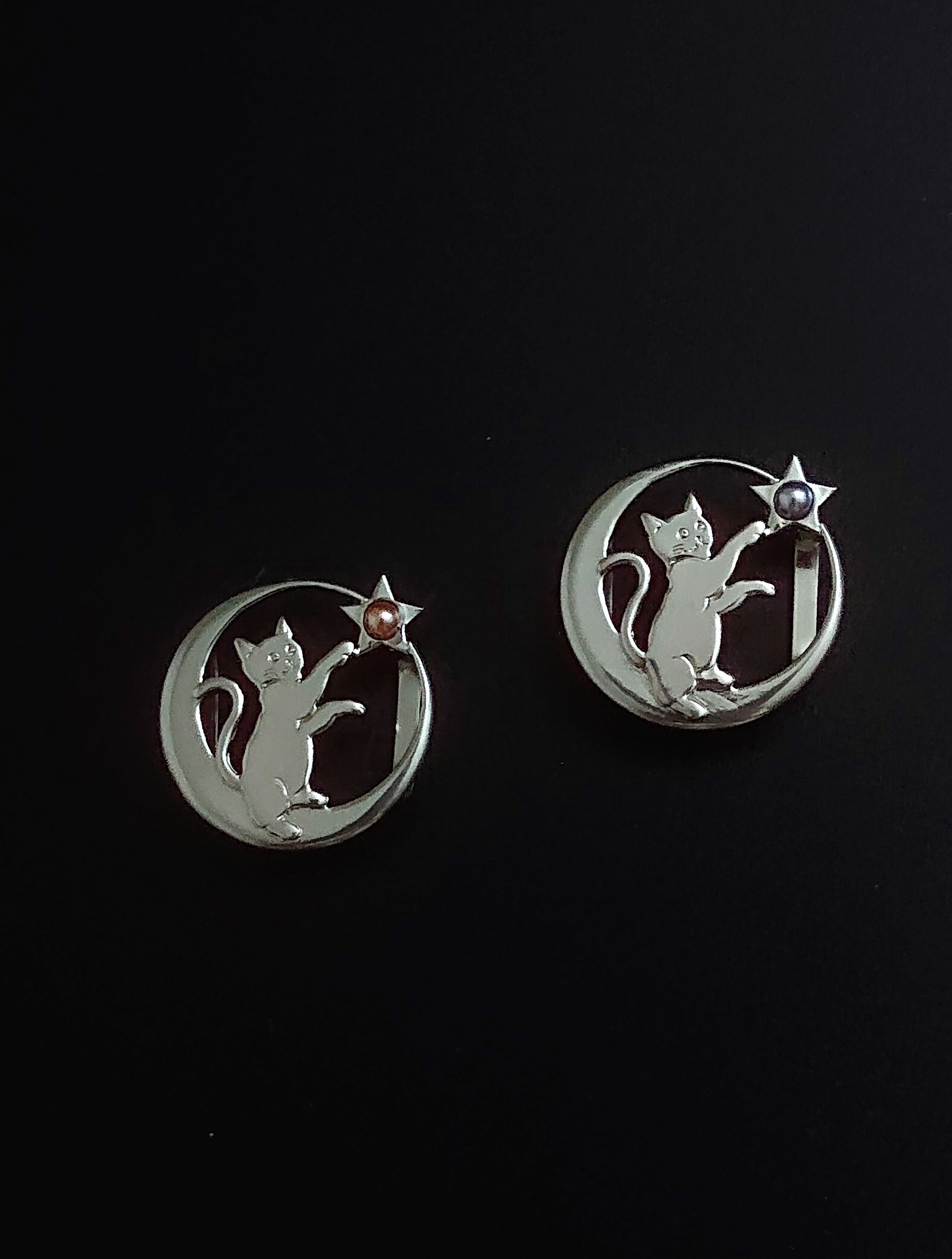 星に手を伸ばす猫帯留め