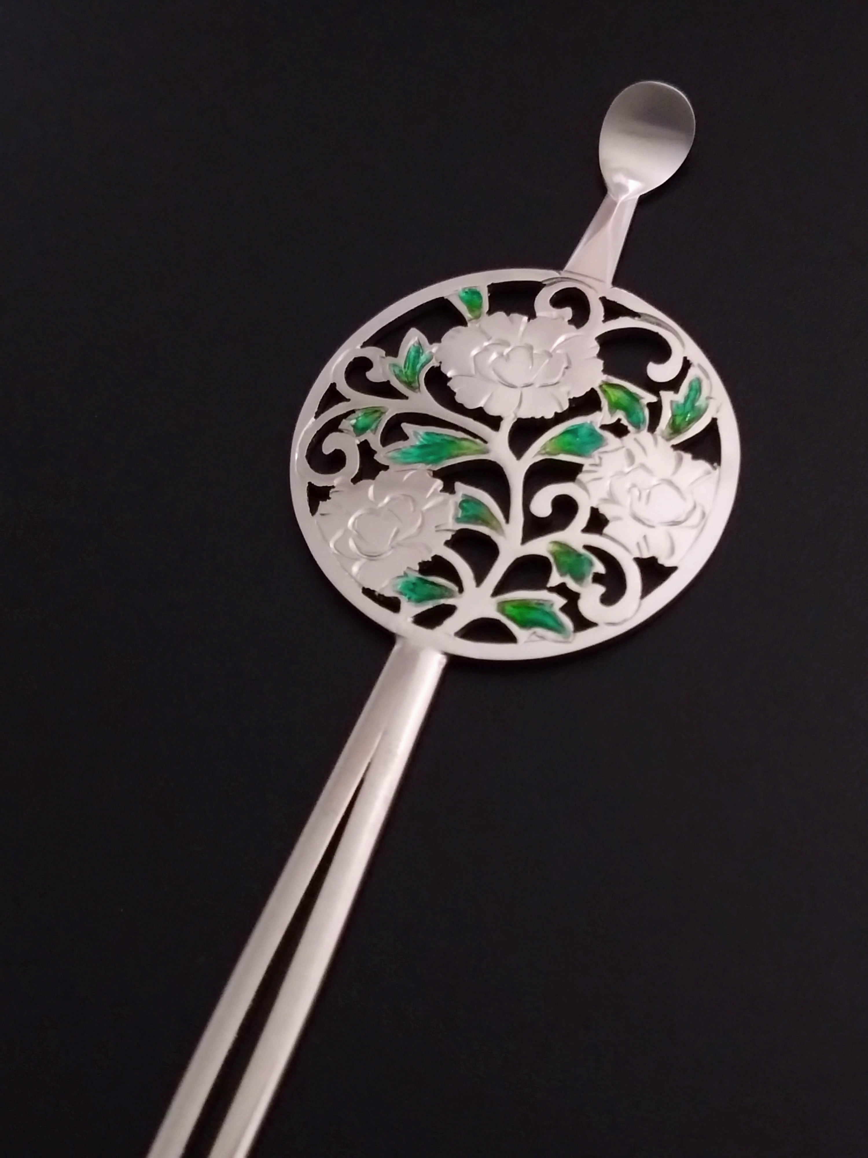 伝統的な平打ち簪にアール・ヌーヴォー調を融合させたお洒落なデザインに心惹かれて復刻版を作りました。